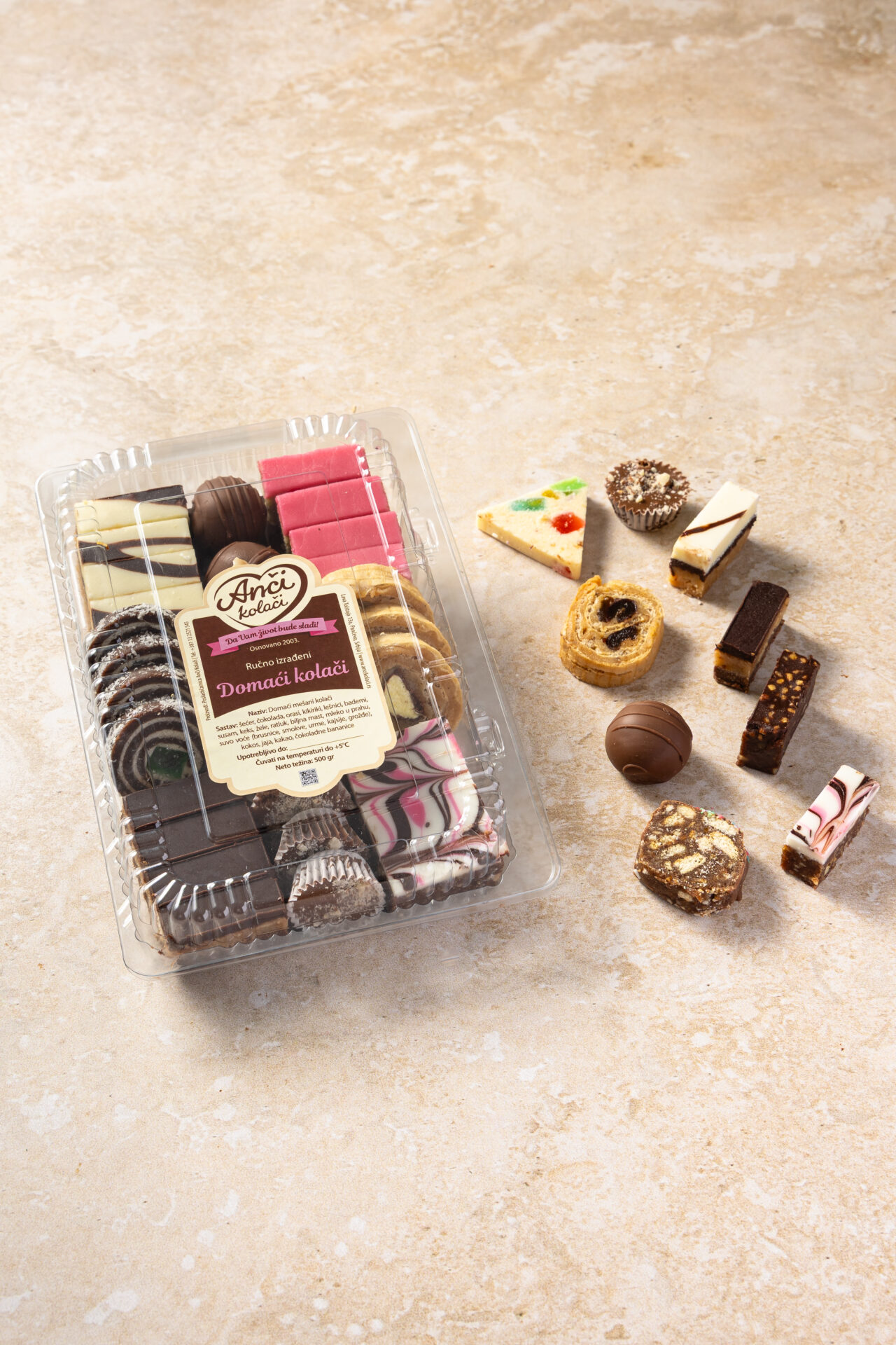 Kolač trouglastog oblika od mleka u prahu uz dodatak lešnika, kakaoa i oraha.