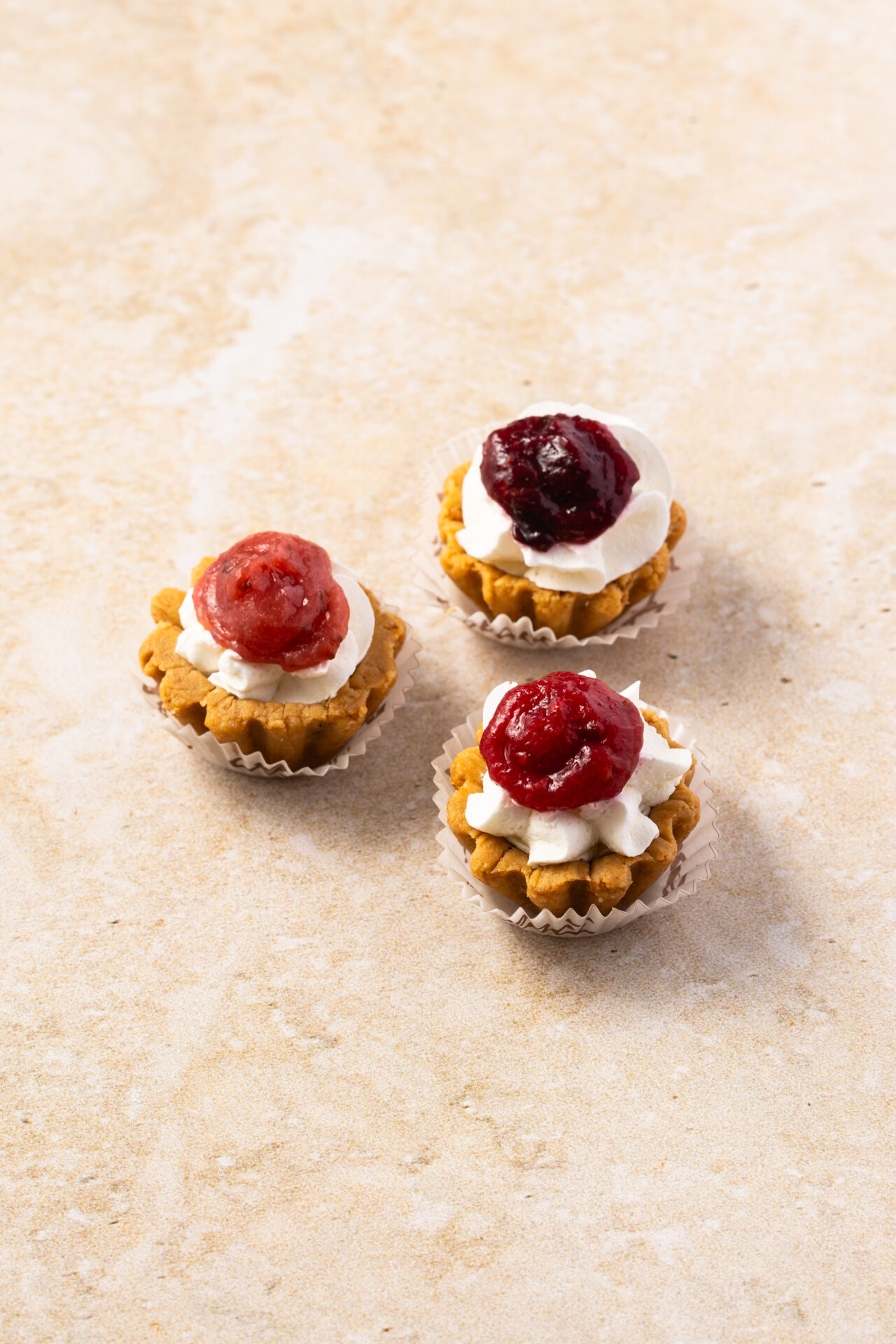 Podloga od mlevenog Plazma® keksa, putera i pomorandžinog soka – krem od slatke pavlake i mascarpone sira – voćni nadev šumsko voće (malina, višnje i šumskog voća).