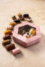 Lagane korice filovane vanil kremom sa lešnik grilijašem i ganašem crne čokolade.